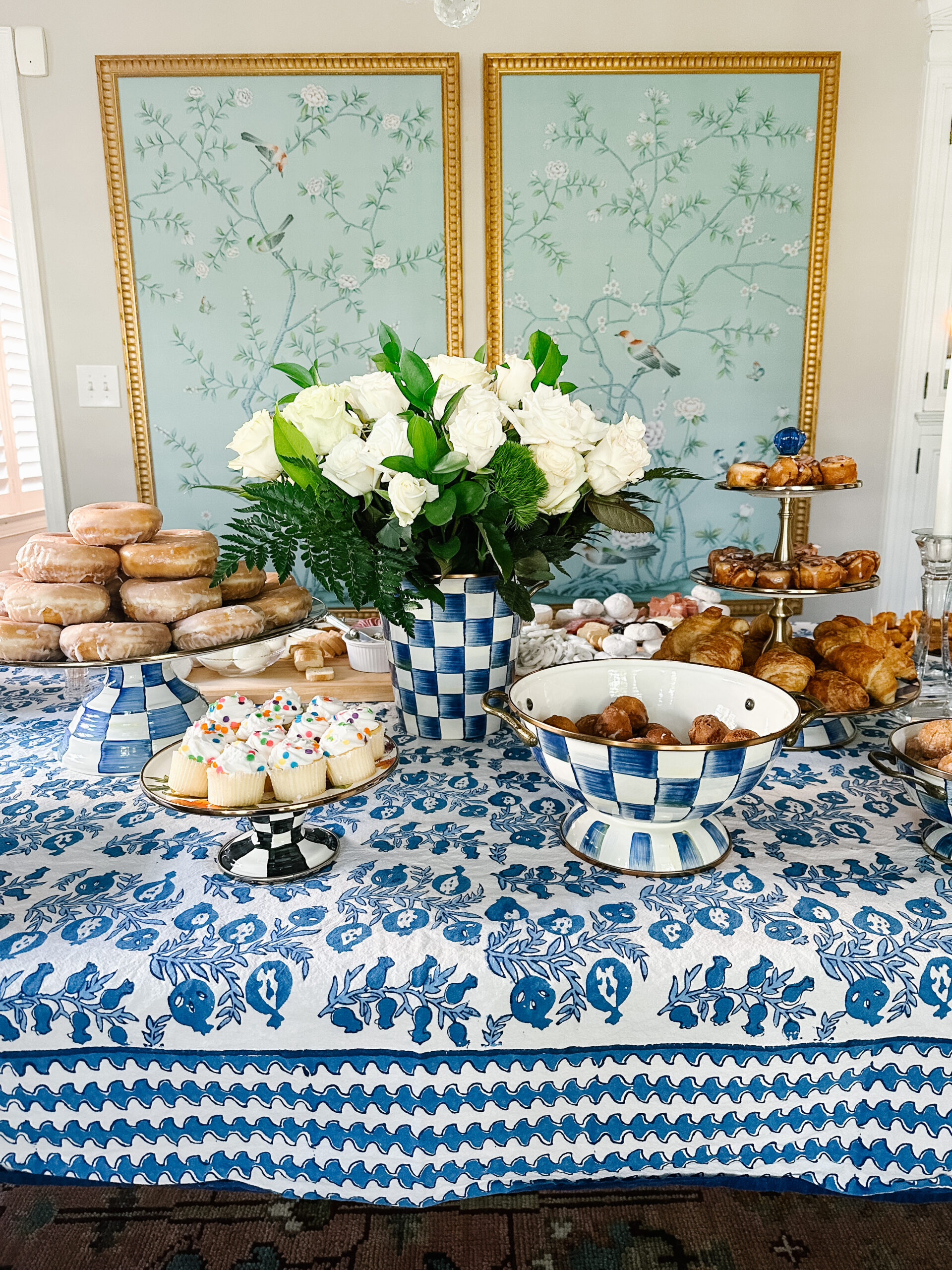 I recently hosted a festive blue and white brunch with the help of MacKenzie-Childs. I selected serving pieces from the Royal Check and Flower Market Collections. Each handcrafted piece has a unique signature of its own, and no two pieces are alike.