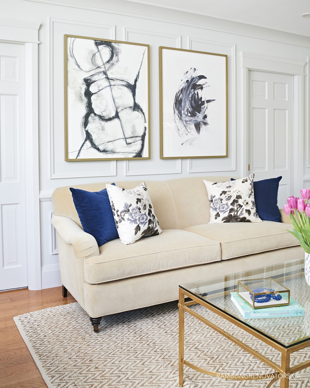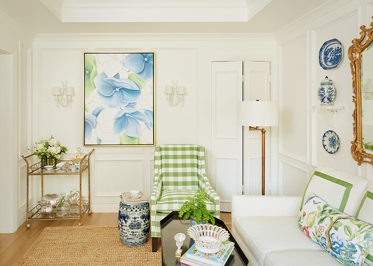 As you know, when something is described as “preppy traditional”, chances are I’m going to like it. This living room was no exception! And the woodwork – please take note!